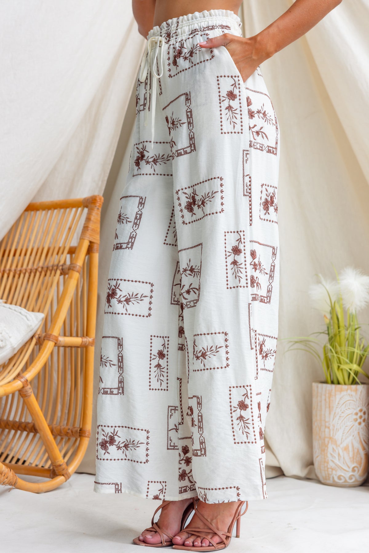 •  Elastic waistband with drawstring tie